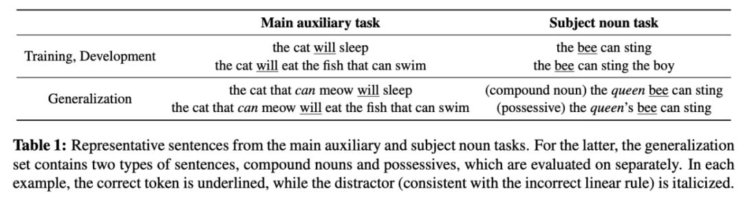 Training 和 Development 集合是原有数据集。Generalization 集合是根据一些语法规则(加了一些从句,名词替换为复合名词或所有格名词等)在 Training 和 Development 基础上生成的。Generalization 集合才是最后实验的数据。