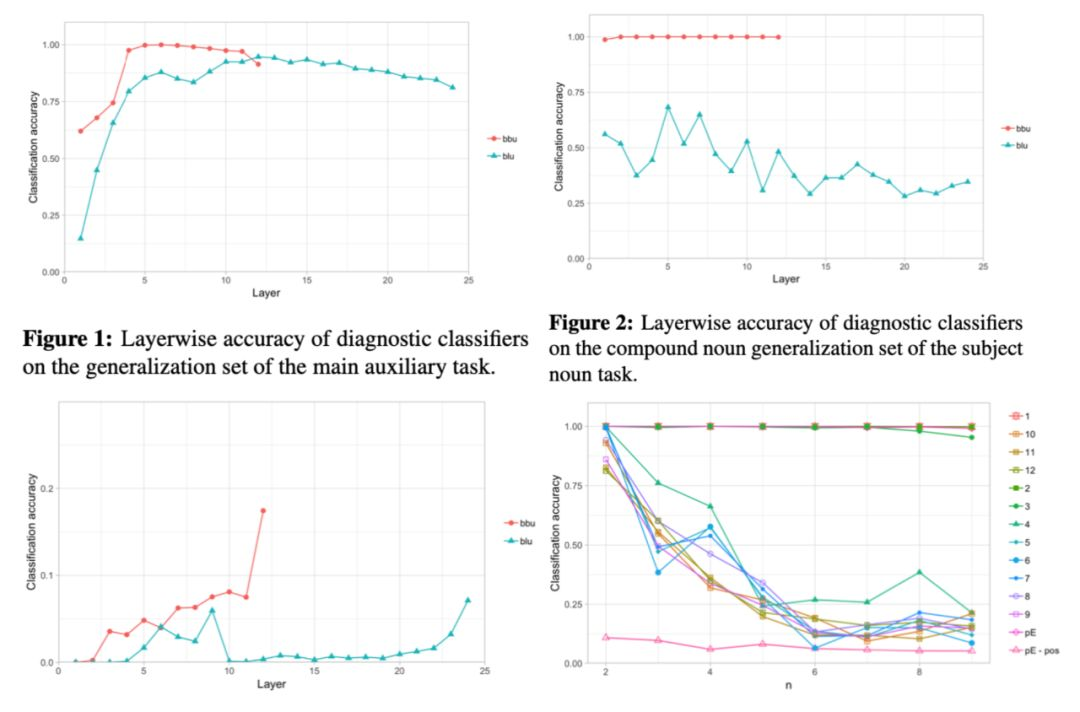 设计了三个 probing tasks 分别是识别一句话中的助动词、主语名词以及第 n 个 token。