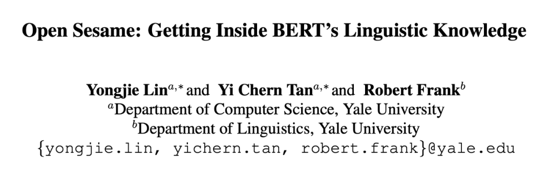 论文标题: Open Sesame: Getting Inside BERT’s Linguistic Knowledge