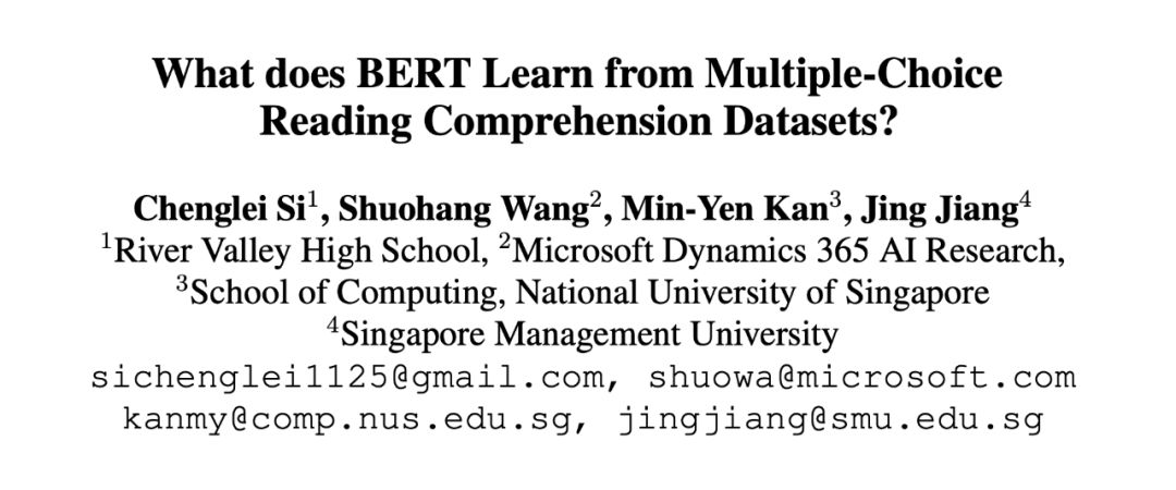 论文标题: What does BERT Learn from Multiple-Choice Reading Comprehension Datasets?