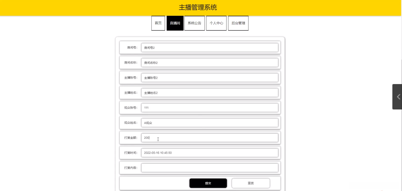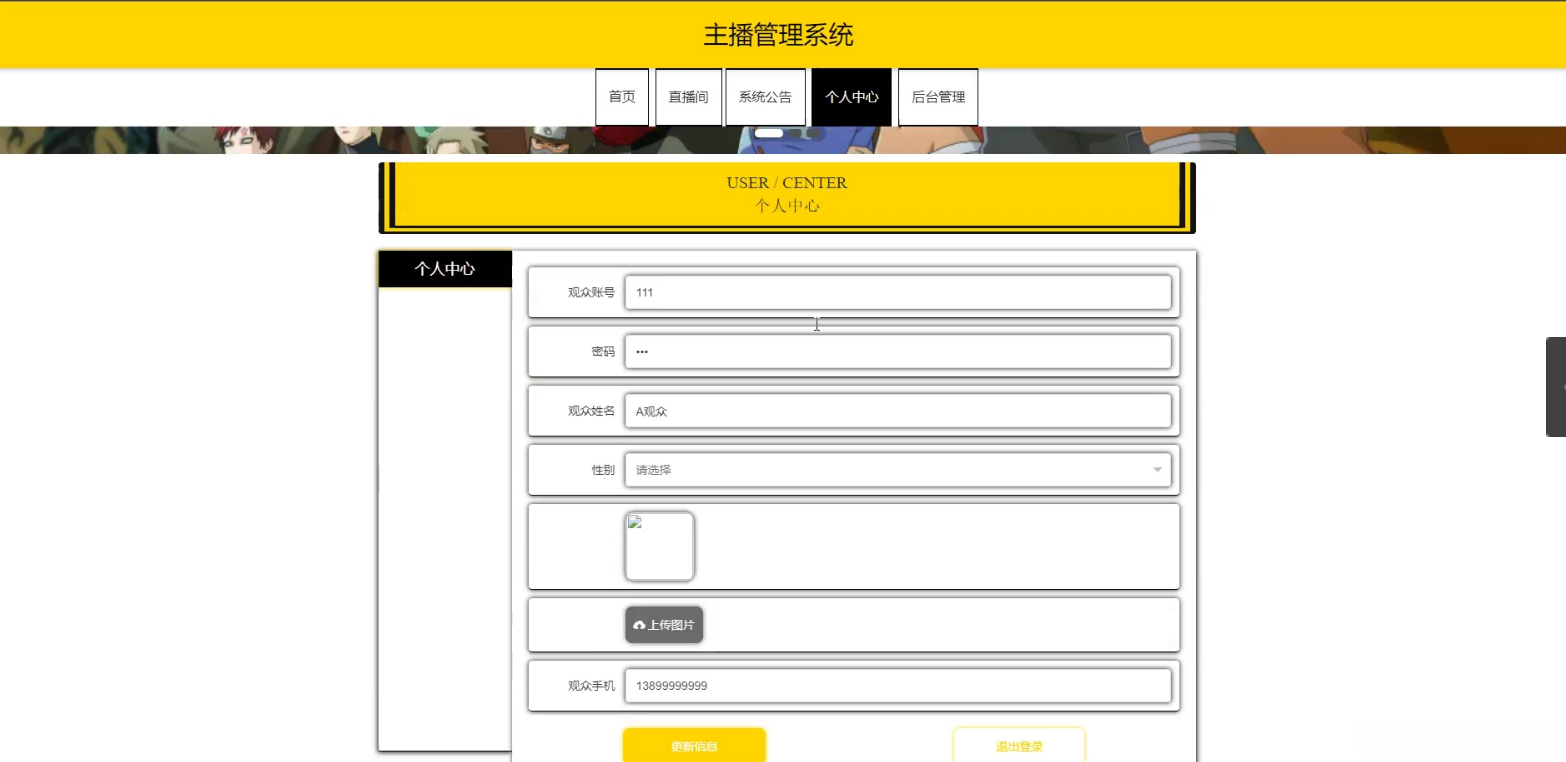 毕设项目:主播管理系统(JSP+java+springmvc+mysql+MyBatis)