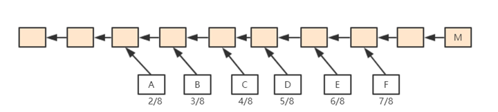 这样就能让所有节点更方便地记录信息。考虑到包含几千年代的叔父区块这一重要特性,在区块链系统中维护繁重的状态数据是不可避免的事情。因此你的发布块包含了重要的叔父区块而其他节点也需要进行验证工作以确保系统的完整性与安全性。此外在设计7个世代内逐步递减的奖励机制时可以采用一种激励策略即随着时间推移每个后续世代所能获得的比例会逐渐减少从而引导各方尽快达成共识并实现新区块的有效合成。(然而目前的情况是无论M选择哪个世代来合成新区块(即矿池)每期都会获得1/32的概率这如何能激励尽早地进行合并呢?我的理解是A到F之间的分叉新区块很可能属于同一个矿池所以如果M能够优先整合自己所挖出的新区块那么其获得更大比例奖励的机会就会更高)