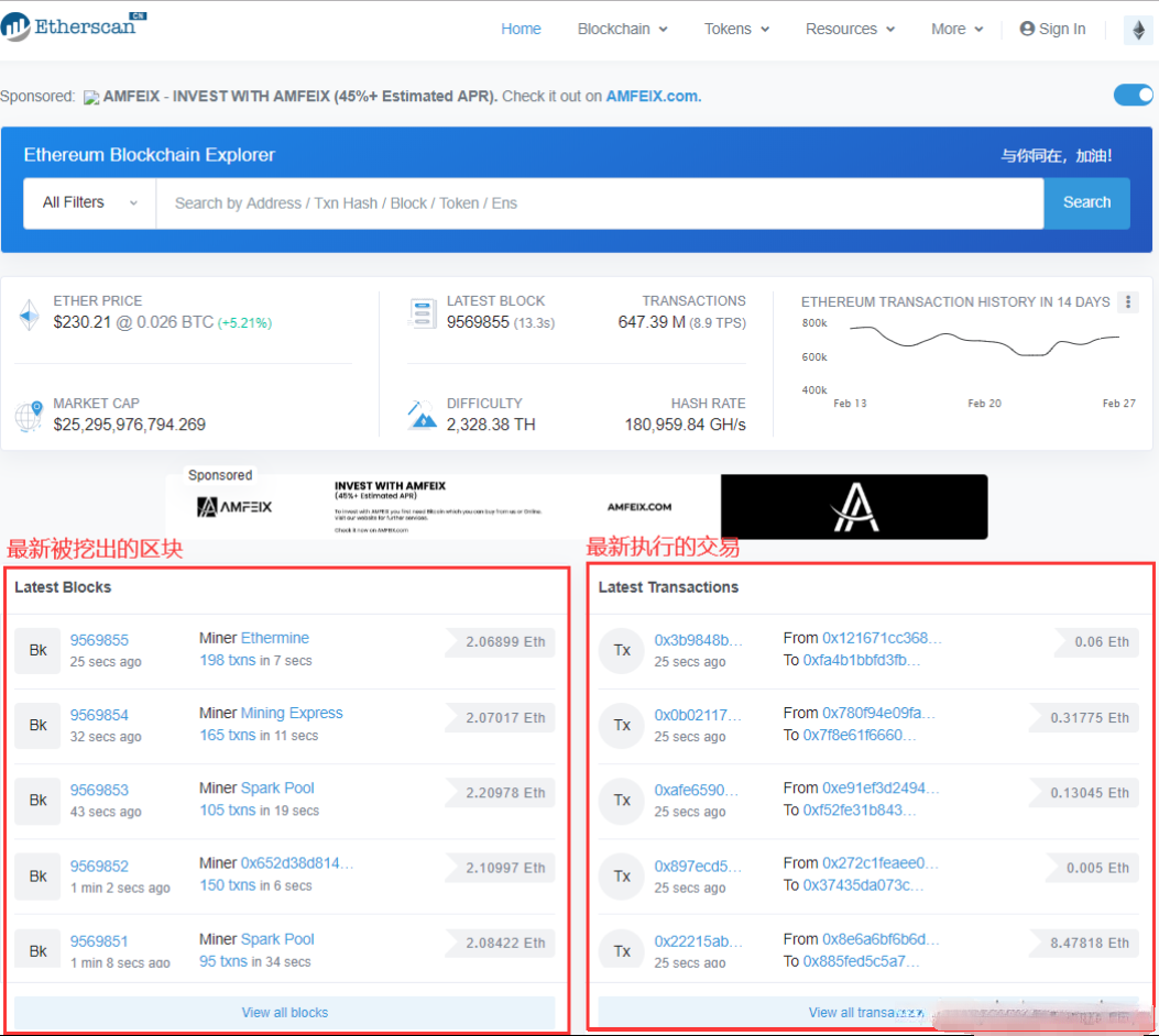 Etherscan平台是一个提供实时监控以太坊数据的工具。以下图片是我于2020年2月28日在该平台上获取的截图,并与肖老师视频中的截图存在一定差异。尽管如此,具体内容大体相同。