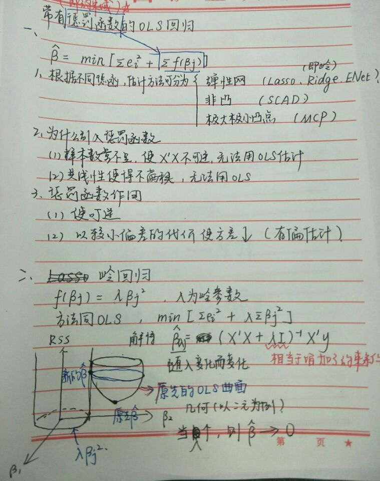 从参数估计的角度,各种方法都是目标函数的最优化问题,只是因为具体情况不同,使得各自约束条件不同,因此估计得到的参数也不同。映射到几何意义上,大致是在OLS的原始曲面下寻找新的最优解(根据约束域)。