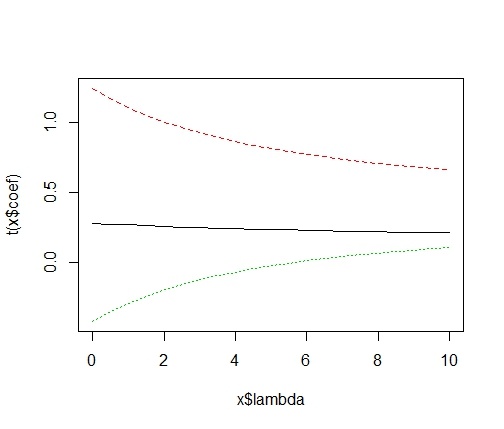 plot(lm.ridge(Sepal.Length~.,iris,lambda=seq(0,10,0.5)))