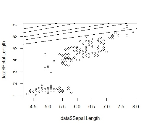 >r2=rq(Sepal.Length~Petal.Length,tau=c(0.05,0.25,0.5,0.75,0.95),data)
