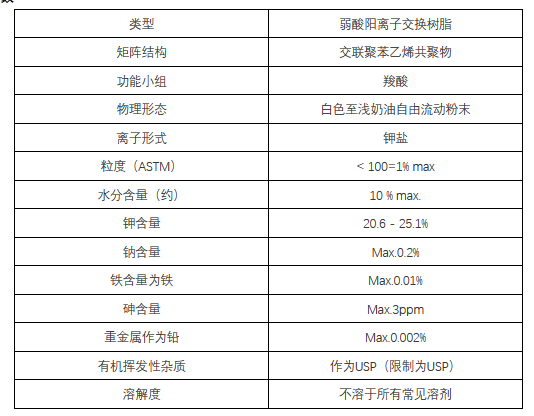 离子交换树脂虽然无法直接增加药物的溶解度, 但能使溶出速率超过原料药本身的溶出速率, 从而促进药物的有效释放。Tulsimer® 339 树脂是一种高度纯化的钾型交联聚丙烯酸酯共聚物, 在作为片剂溶解剂时, 其钾离子形式相较于氢离子形式具有更大的膨胀能力, 这样一来, 药片摄入后便能迅速、均匀地释放药效作用。