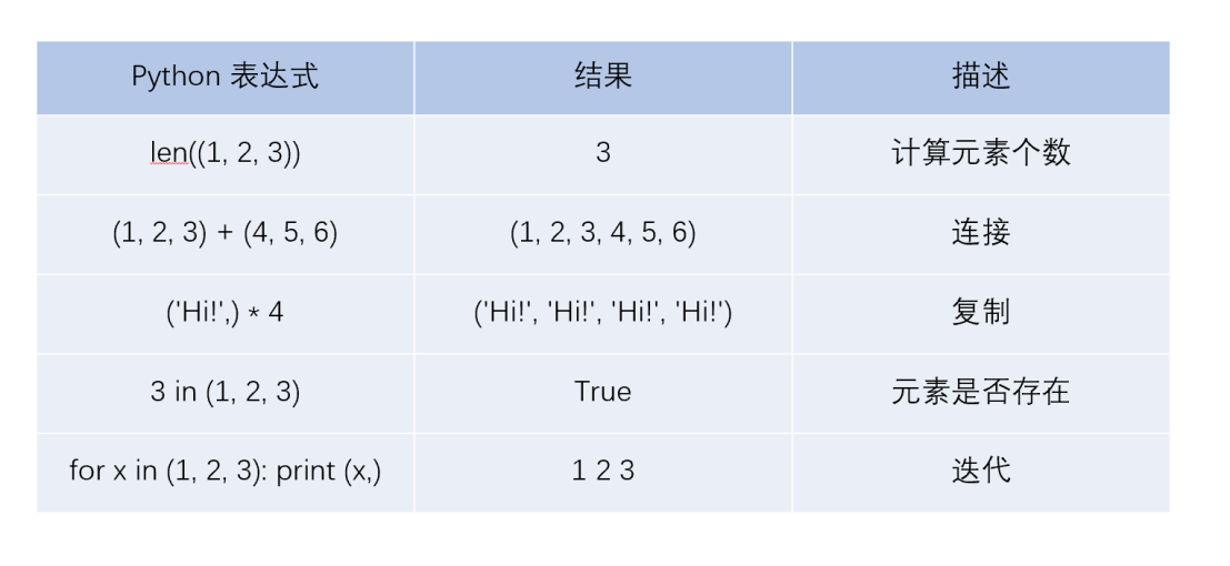 | len(x) | 长度,返回字符串x的长度 len("一二三456")结果为6 |