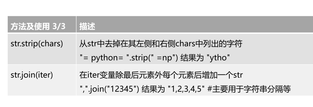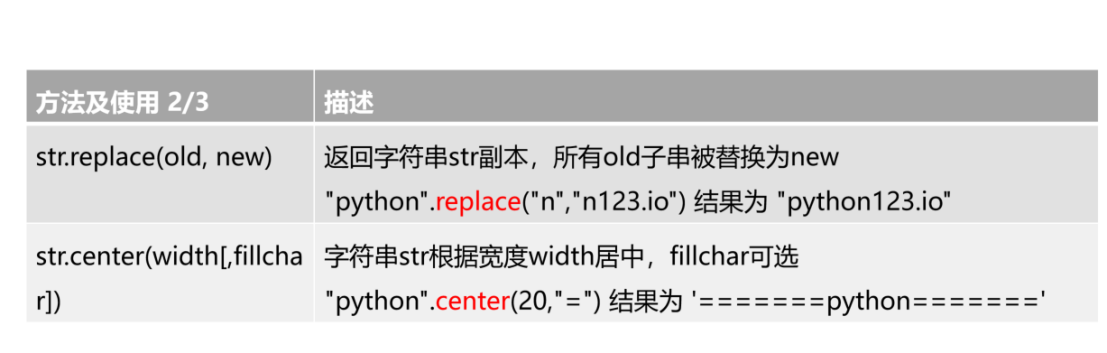 | str.lower()或str.upper() | 返回字符串的副本,全部字符小写/大写 "AbCdEfGh".lower()结果为"abcdefgh" |