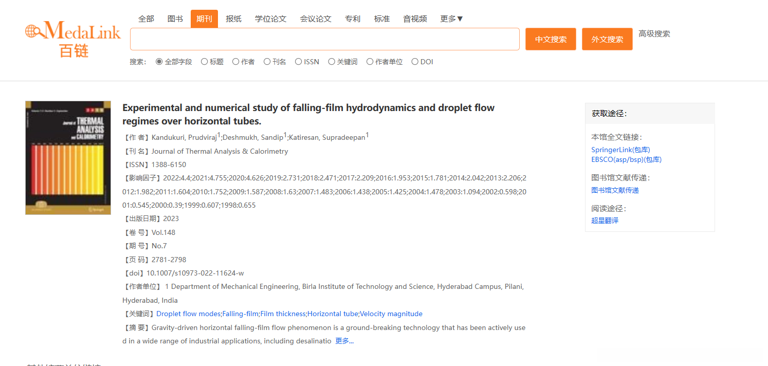 百链springerlink包库出现“您访问的链接不存在”——Journal of Thermal Analysis & Calorimetry也是Springer Nature下面的期刊引用图片收费