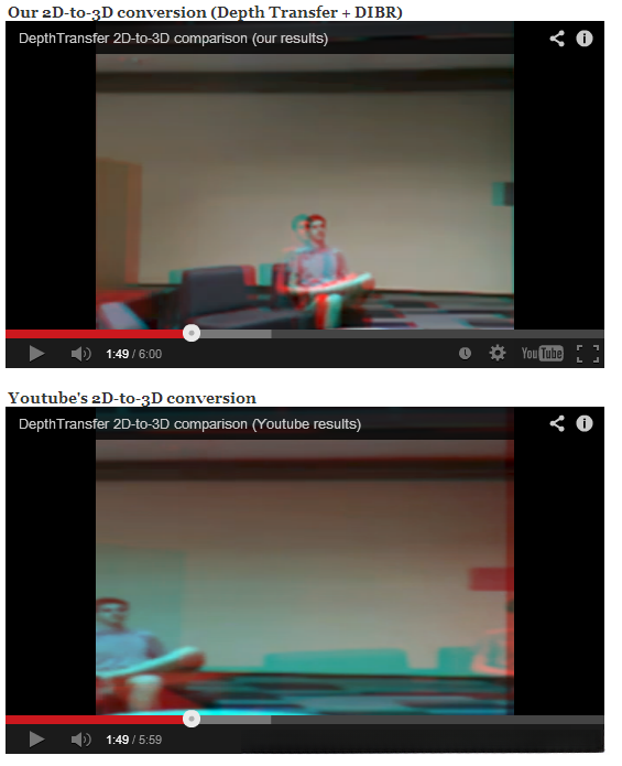 由此产生的一个应用就是stereoBrush方法在2D到3D转换技术中的具体体现,在这项研究中提到的具体实现过程包括两步:首先生成每一帧的深度图谱;随后基于深度图谱对相应的图像进行调整以实现双重目标。该研究中的具体实现过程包括两步:首先生成每一帧的深度图谱;随后基于深度图谱对相应的图像进行调整以实现双重目标。由于原始算法仅适用于处理单一图像而非连续的画面序列这一限制,在这项研究中提出了一种新的解决方案以解决这一问题进而实现了算法在视频数据上的适用性提升。