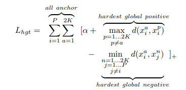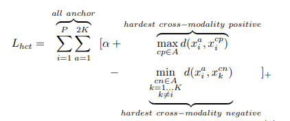 hard pentaplet loss由困难全局三元组(hard global triplet)和困难跨模态三元组(hard cross-modality triplet )损失组成:
