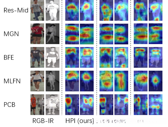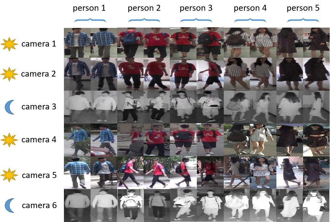 现有的行人重识别研究大部分集中于RGB图像的研究,然而RGB摄像头在黑暗处不能获取清晰图像,现有的摄像头往往集成了RGB摄像头和红外摄像头(IR Camera)的功能于一身,在黑暗处使用红外摄像头获取图像。存在这种情况:嫌疑人在黑暗与亮光处穿行,从而被RGB摄像头和红外摄像头拍摄到,则产生这样的需求:需要判断RGB摄像头拍摄到的行人和红外摄像头拍摄到的行人是否是同一人。2017年,郑伟诗团队公开了首个跨模态行人重识别数据集(SYSU-MM01),以及对应的benchmark。