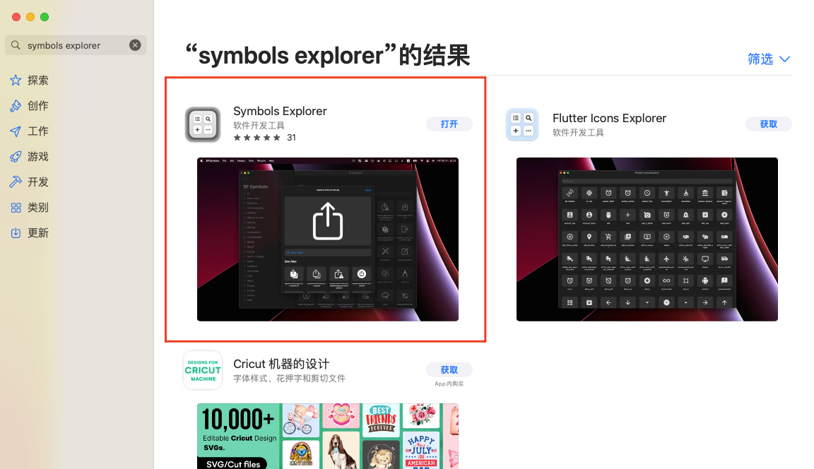 第一步是要了解系统中图标的名字;为了获取这些名称的信息,在App Store上下载Symbols Explorer应用程序会有所帮助。