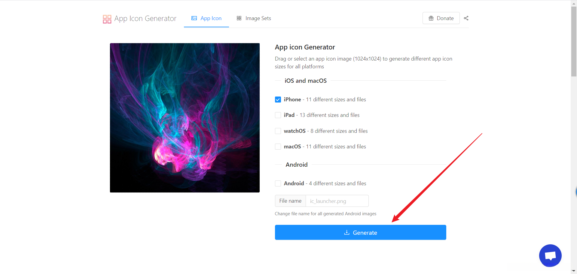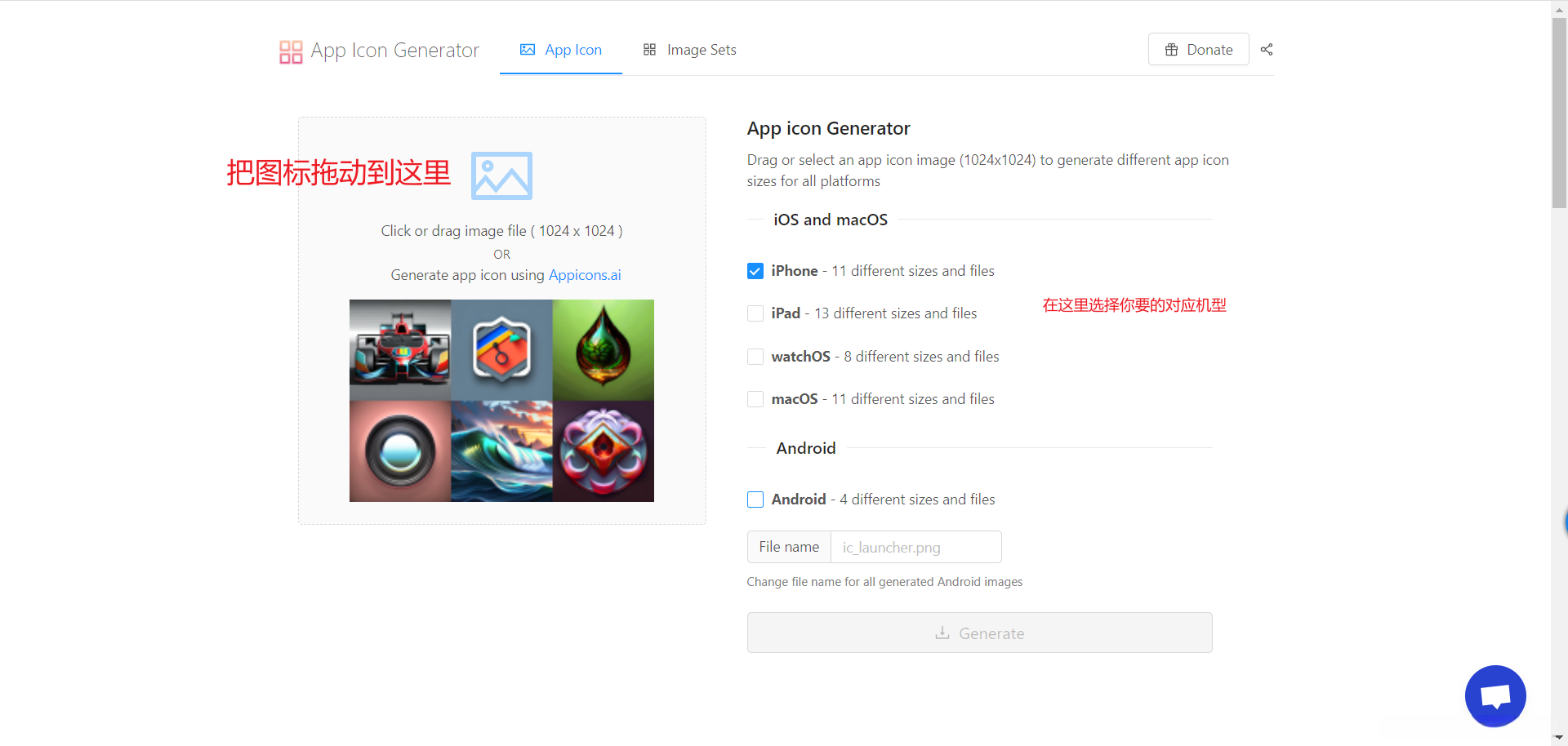随后准备好一张分辨率设置为1024×1024像素的图标文件,并将该图标文件导入到指定的位置