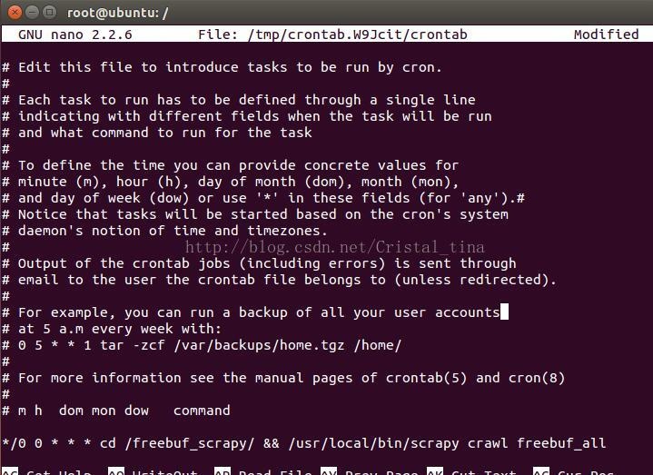 在打开的文件中的最后一行,添加要执行的命令和执行频率: