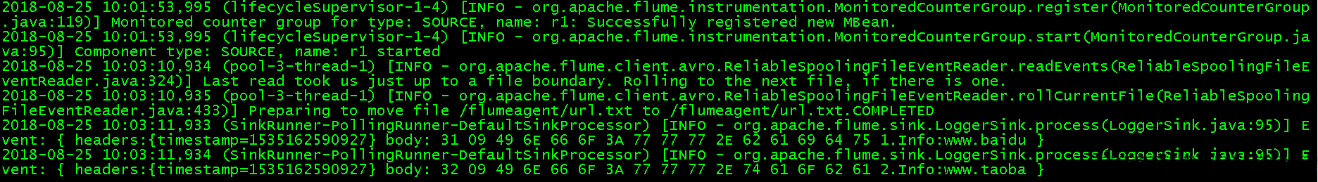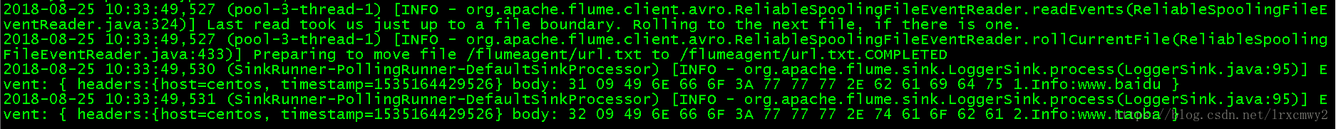 将测试用的文件夹里的url.txt删掉,然后开启Flume,再拷贝文件进去
