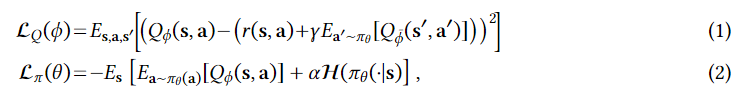 属于目标网络(Mnih团队于2013年提出),actor损失采用通过自适应调节参数𝛼进行熵正则化(Haarnoja团队于2018年提出)。