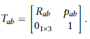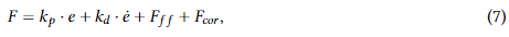 其中,我们使用  表示帧{𝑎}和{𝑏}之间的齐次变换矩阵。我们将从  中提取的位置和旋转信息馈送到policy。这里我们用  来表示帧{𝑎}和{𝑏}之间的齐次变换矩阵,定义为:  在大部分场景中,在机器人系统当前感知到的环境中执行策略生成六自由度(6dof)姿态变化操作。  。从数学上,6自由度扭转作用  在时间步长𝑡的坐标系  在该系统中进行表示描述。为了建立机器人控制软件的连接通路,在基帧{𝑠}中进行动作描述要求。  ,我们应用伴随映射:  式中  是齐次变换  的函数,定义为:  在两个动态操作任务中,在当前环境中由 policy 输出的一个 3 dof 前馈 wrench运动量 亦即 对应于当前接收观察的参考坐标系。  接着将该值传递至低阶机器人控制器。随后,在基于当前时间步长$t$的情况下,将该值与雅可比矩阵的转置矩阵相乘,从而得到关节扭矩。 ### D.2. Robot Controller 在多数情况下,低级机器人控制器是一个运行在1000赫兹频率上的阻抗控制装置,在这种系统中会接收到由policy模块计算得到的10赫兹频率的目标值作为输入信号。如(Luo等人,在2024a年)所述,在这项研究中我们对其进行了额外优化处理以确保其在多数接触密集的操作场景中能够维持稳定的训练过程。考虑到一个典型的无前馈项阻抗控制装置:  式中  ,𝑝为被测姿态,𝑝𝑟𝑒𝑓为上游控制器计算的目标姿态,  为期望的前馈力,  为计算科里奥利力,则需将雅可比矩阵的转置与零空间力矩的偏移相乘以将目标转换至关节空间中的力矩。其功能类似于一个弹簧-阻尼系统,在设定值𝑝𝑟𝑒𝑓附近维持平衡状态;其中刚度系数为𝑘𝑝而阻尼系数为𝑘𝑑。正如所述,在𝑝𝑟𝑒𝑓远离当前姿态时该系统会产生较大的作用力这可能导致手臂在接触物体时产生硬性碰撞甚至损坏因此必须对其产生的相互作用加以约束然而单纯地减少增益可能会削弱控制器的整体精度因此建议引入一个约束条件使得|𝑒|≤Δ随后基于弹簧-阻尼系统所生成的作用力将会被限制  ,𝑓是控制频率**。 对于两个动态操作任务来说,在1000Hz频率下采用前馈 wrench控制器。该控制器接收由政策计算得到的每10Hz更新值,并通过将雅可比矩阵转置并结合偏移量与零空间扭矩相乘来实现其功能:即将其所需的扳手动作转化为相应的关节扭矩输出。
