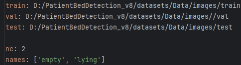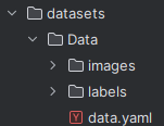 接着需要新建一个data.yaml文件,用于存储训练数据的路径及模型需要进行检测的类别。YOLOv8在进行模型训练时,会读取该文件的信息,用于进行模型的训练与验证。