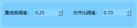 (2)交并比阈值:当前设置为0.70,表示系统只会认为交并比(IoU)超过70%的检测框为有效结果。交并比是检测框与真实框重叠区域的比值,用于衡量两个框的相似程度,值越高表明重叠程度越高。