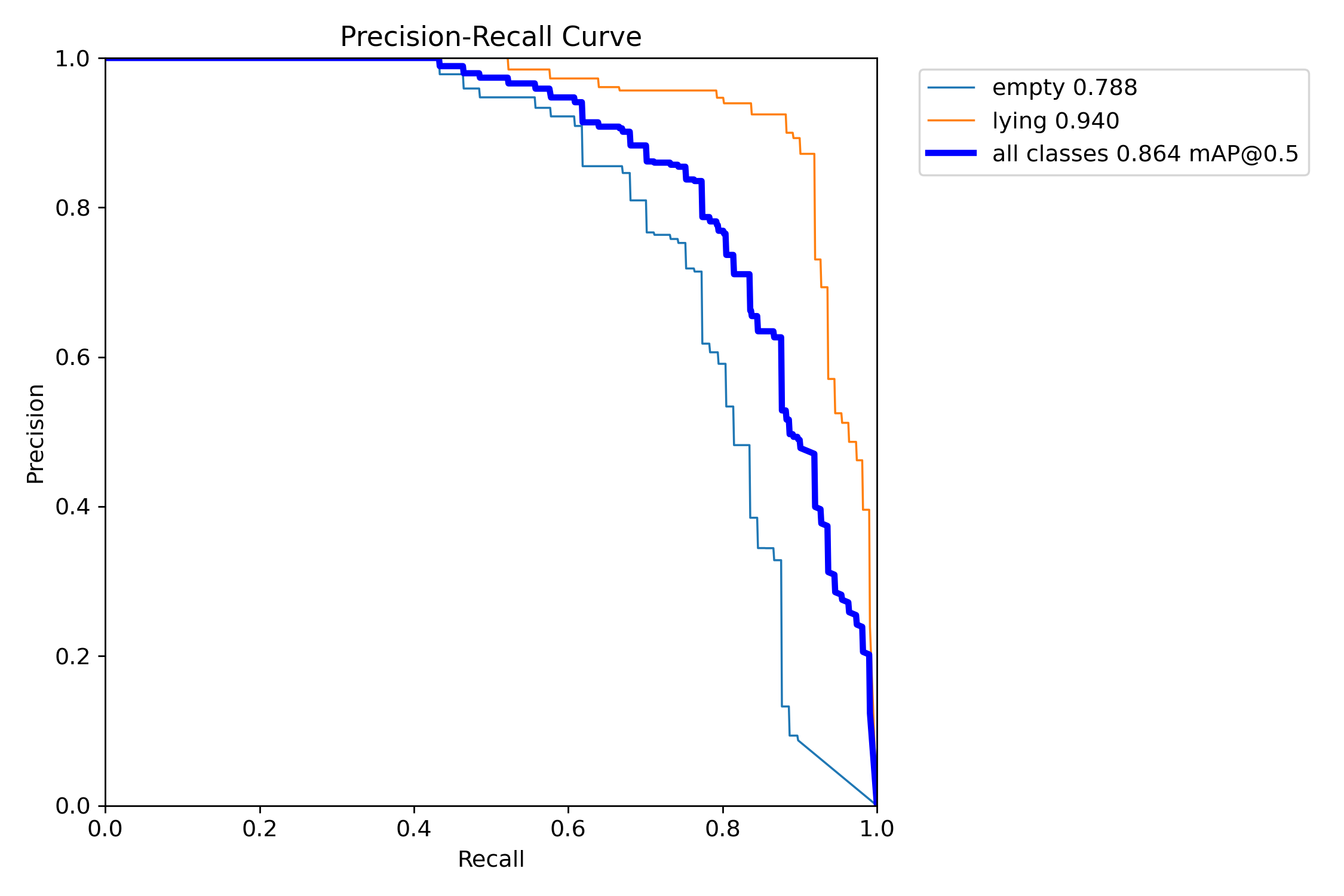 (2)mAP@50-95:达到 58.4%,表明模型在不同的IoU阈值下表现稳健,能够较好地检测和分类床位。