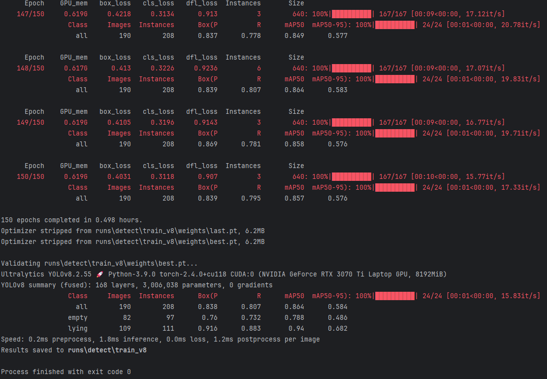 温馨提示:在CPU上训练深度学习模型通常会比在GPU上慢得多,尤其是像YOLOv8这样的计算密集型模型。除非特定需要,通常建议在GPU上进行训练以节省时间。