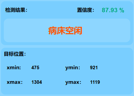 这些坐标表示在图像中的目标区域范围,框定了检测到的“病床空闲”的位置。