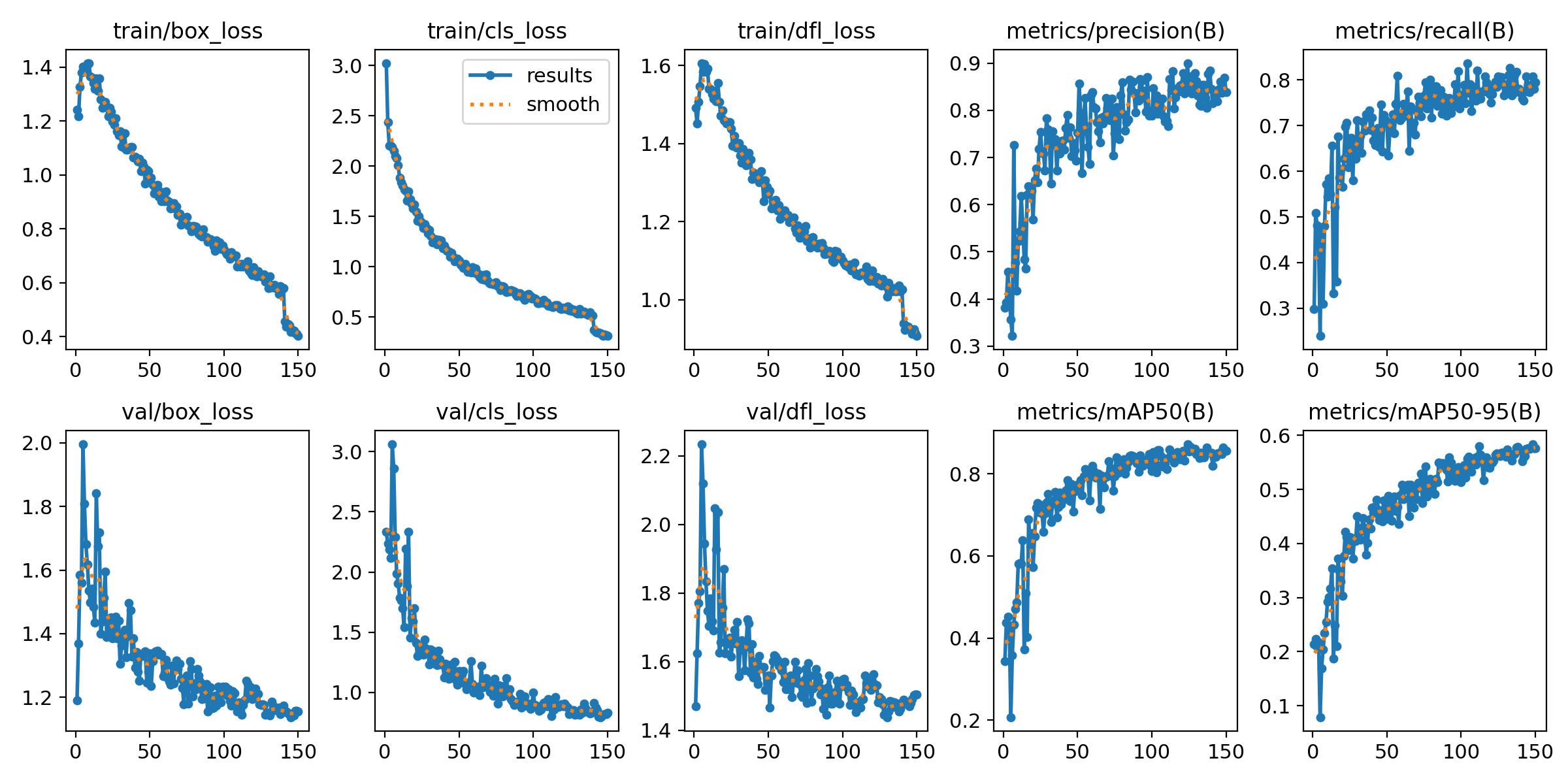 (3)表现出较高的训练效率,得益于YOLOv8模型的优化设计和高性能硬件的支持。