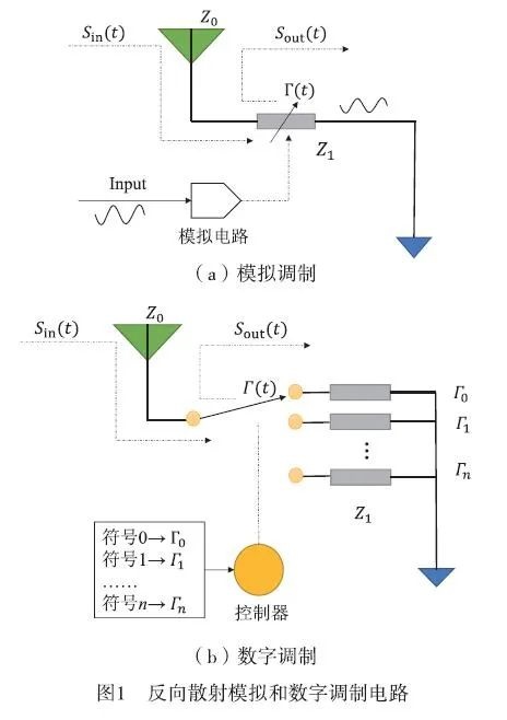 反向散射通信设备依赖其他设备或环境中的射频信号进行信号调制以发送信息。调制电路如图1所示中所述 该设备通过调节自身的内部阻抗来控制反射系数
