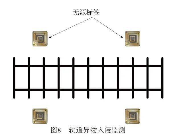 (1)轨道上异物入侵的监测系统。如图8所示 ,在铁路周围布置无源标签装置以采集轨旁环境数据这些数据通过反向散射传输至智能终端设备进行处理分析用于实时监控动物侵入轨道桥梁损毁或坠落等情况同时检测水管破裂等潜在风险