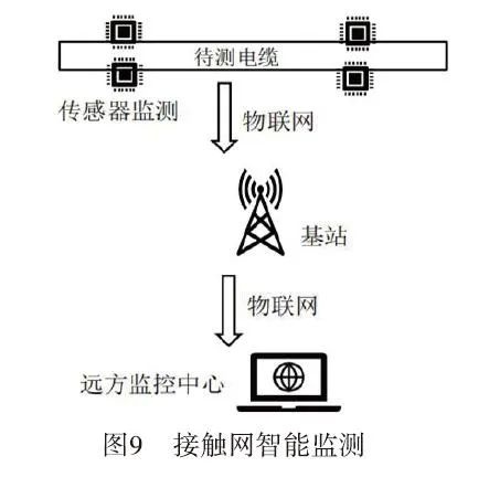 (2)接触网智能监测。如图9所示 ,为铁路接触网电缆安装无源标签后进行实时采集电缆张力数据,并将采集到的数据传输至监控中心。该系统能够实现对接触网状态的高效实时监测与分析,并防止因电缆张力异常导致的电力安全事故发生