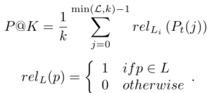 5)P@K: 每个文本都有一组L个基本事实标签,
