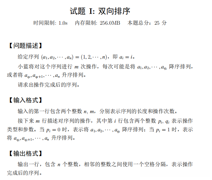 原数列为 (1, 2, 3)。 第 1 步后为 (3, 2, 1)。 第 2 步后为 (3, 1, 2)。 第 3 步后为 (3, 1, 2)。与第 2 步操作后相同,因为前两个数已经是降序了。【评测用例规模与约定】