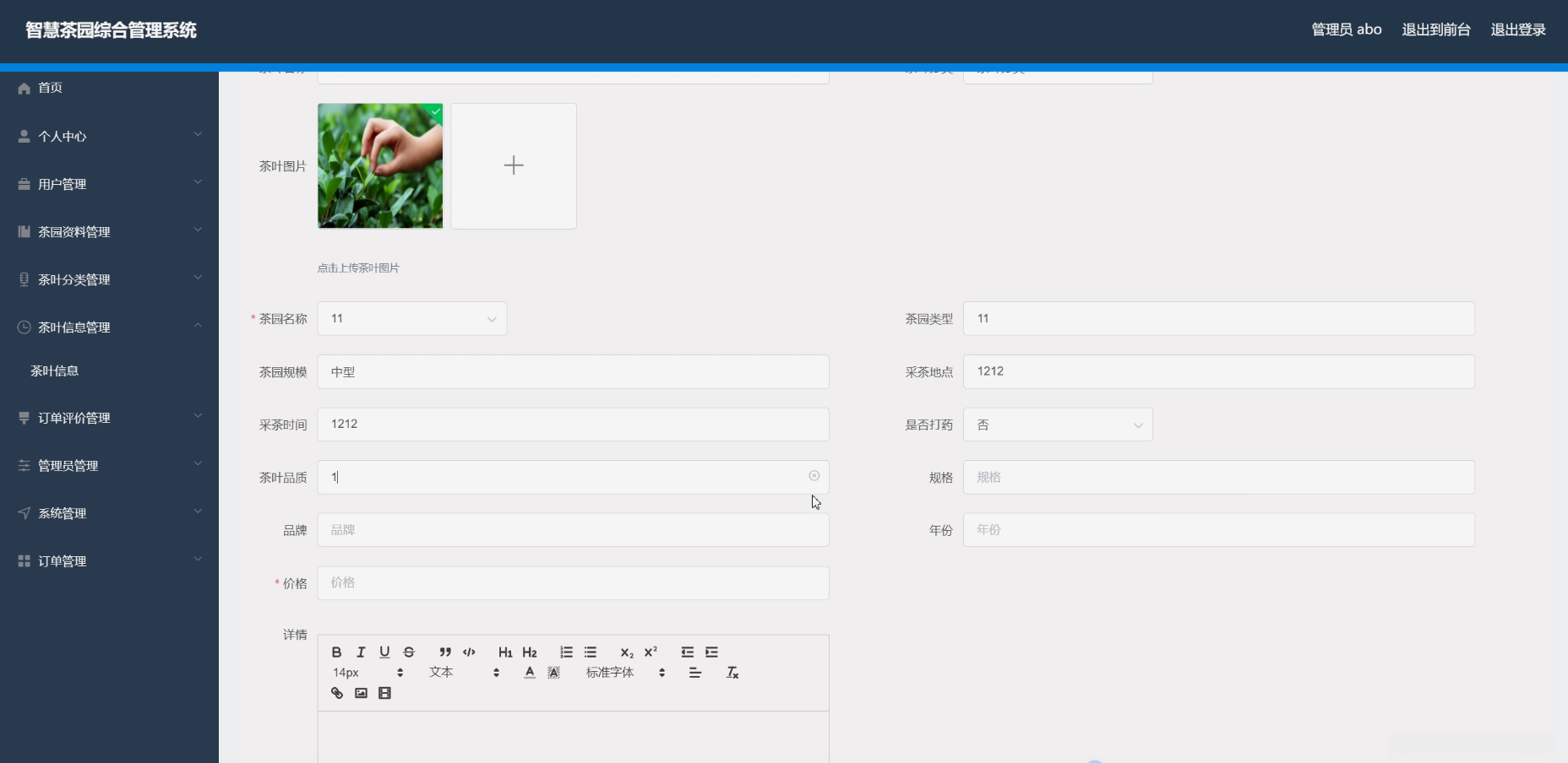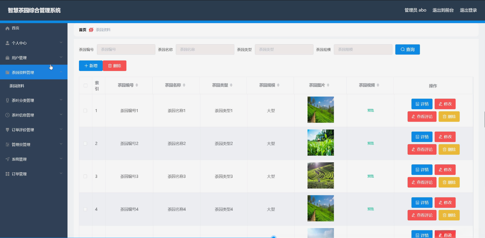 本研究的目标是开发一个适用于茶园的智慧整合管理系统。该系统将整合茶园生产、经营以及销售等方面所需的信息,并通过智能化分析与处理手段来辅助茶农做出科学且合理的经营决策。具体而言, 本研究旨在完成以下四个主要任务: 构建关于茶园的基础信息数据库集合, 包括相关信息如地理位置数据, 土壤环境参数, 茶叶品种分类等; 采用智能化手段对茶园内各阶段茶叶生长状况进行实时监控与有效管理; 开发基于互联网技术的企业级在线销售平台系统, 实现茶叶电子商务化运营; 搭建一个专业的茶农培训交流社区平台网站, 促进茶农间的互动与经验共享。