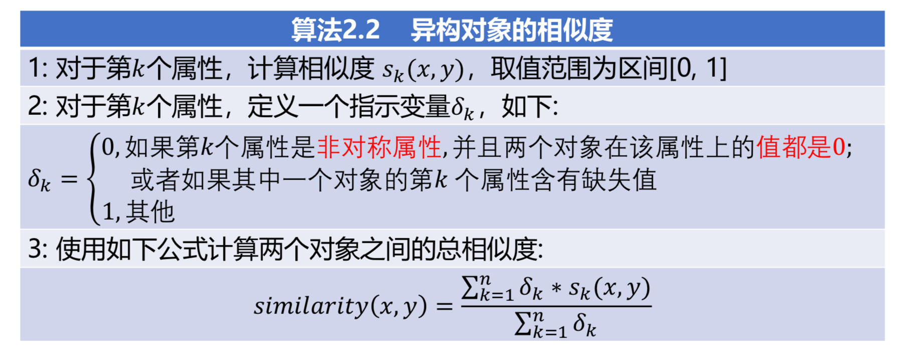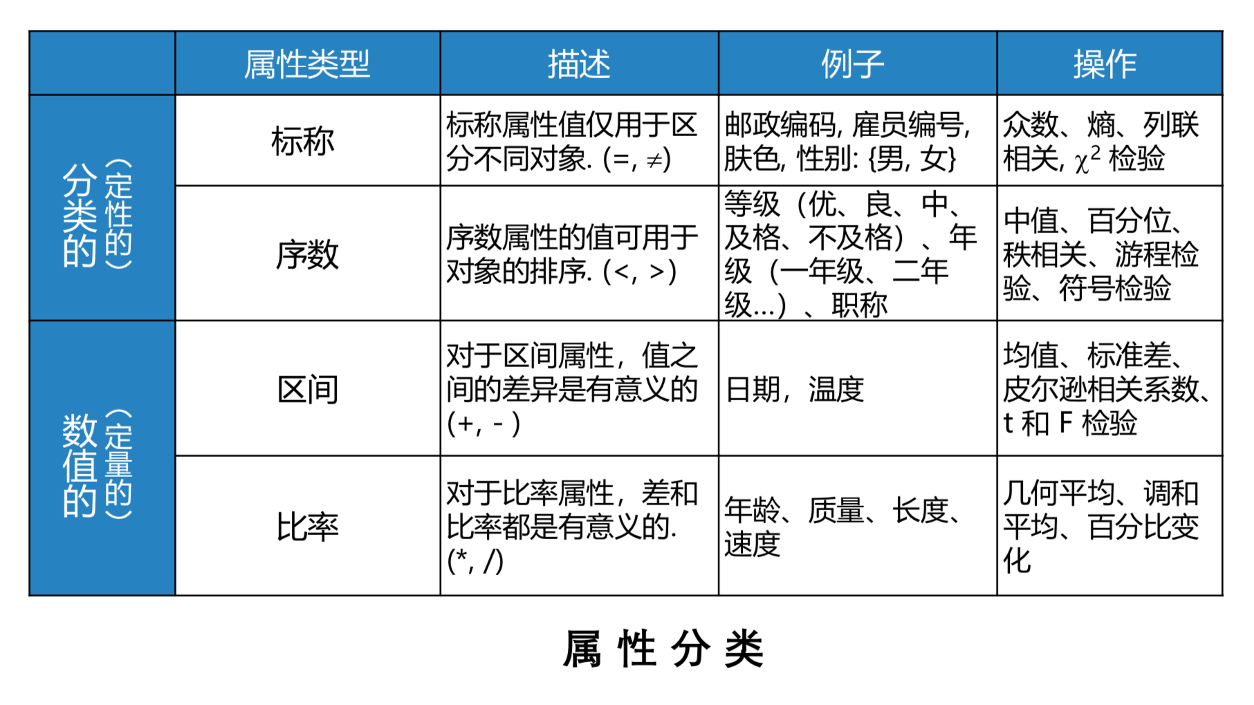 * 传统分析方法只处理包含**相同类型属性** 的数据集。