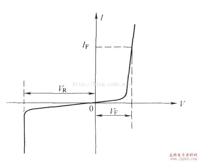 实际上太阳能电池本质上相当于恒流源与二极管并联,并且还存在串联电阻与并联电阻。在无光的情况下施加电压时,该系统将表现为下图所示的二极管特性的曲线图。