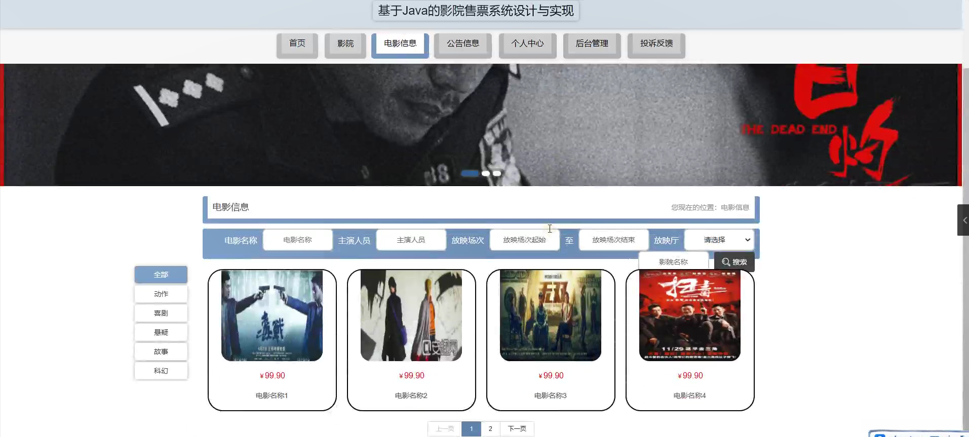 本研究的核心任务是开发和构建一个基于Java语言的电影票务管理系统。该系统主要包含有以下功能模块:
