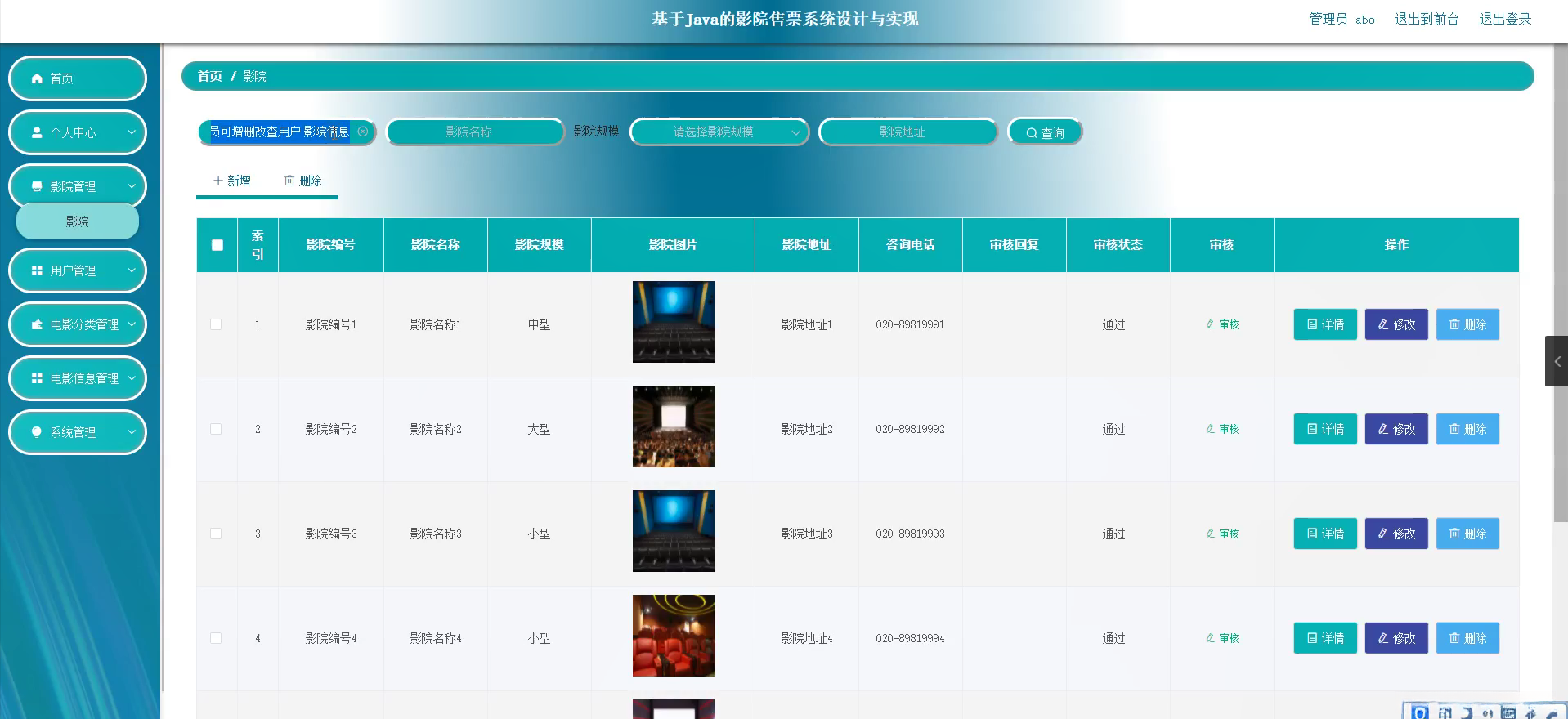 本研究旨在开发一个基于Java平台的智能影院售票系统。该系统不仅能够完成在线预订、选座及支付功能的实现,并且还能够显著提升服务效率与顾客体验水平。通过这一系统的设计与实现, 不仅能为观众提供更加便捷、高效的购票服务, 而且还能显著提升影院运营效率与管理水平, 从而为其带来更大的经济效益与社会价值贡献。此外, 该售票管理系统的成功应用不仅在行业内部获得了广泛认可, 在电影产业的发展中也发挥了重要作用