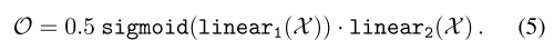 为了增加偏移的灵活性,我们通过对输入特征进行线性投影来进一步产生逐点的动态范围因子。通过使用Sigmoid函数和0.5的静态系数,动态范围取以0.25为中心的[0,0.5]范围内的值作为静态范围。动态范围操作可以参照图2(B)。在这里,我们重写公式。(4)作为