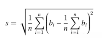 标准差的介绍:标准差是多个数与它们平均数差值的平方平均数,一般用于刻画这些数之间的“偏差有多大”。形式化地说,设第 i 个人付的钱为 bi 元,那么标准差为 : [参见p1.png]
