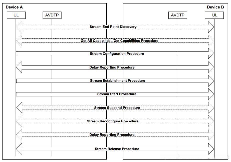 AVDTP为音视频分发协议,在涵盖基础的音视频分发过程的同时涉及音视频参数的协商。然而它并未包含音视频编码解码功能,并可作为A2DP的基础协议方案。