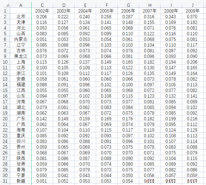 数据集名称 :各省绿色金融指数