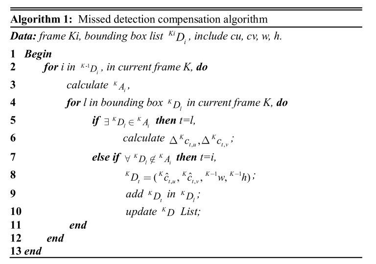 其中:k代表用于在当前帧上实施漏检并进行补偿所需的前一个连续帧的数量。算法处理如下: