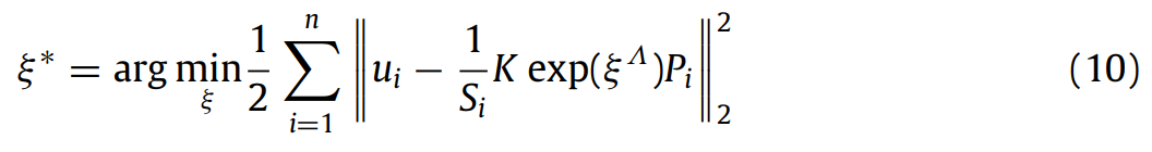最小投影误差是其观测像素坐标 ui 与其在当前姿态 ξ 下三维点 Pi 的重影坐标之间的差异。