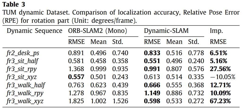 虽然在不影响整体性能的前提下,Dynamic-SLAM新增了一个专门负责物体检测的子进程,并未使其运行速度受到影响