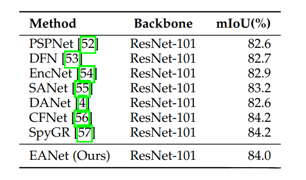 在本实验中,我们采用图 3 中的语义分割架构,将其称为 EANet,并将其应用于 Pascal VOC [88]、ADE20K [94] 和 cityscapes [95] 数据集。