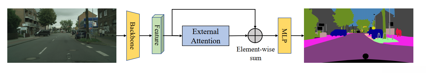 图 3. 使用我们提出的外部注意力进行语义分割的 EANet 架构
