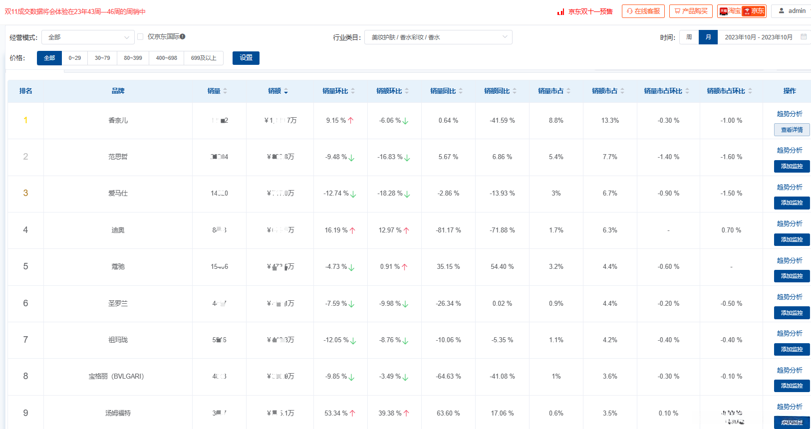 京东大数据分析(京东数据运营软件):10月香水市场销售数据分析报告