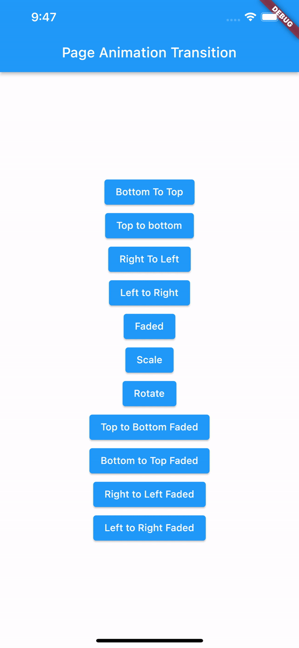 return PageAnimationTransition(child: PageTwo(), pageAnimationType: LeftToRightFadedTransition());